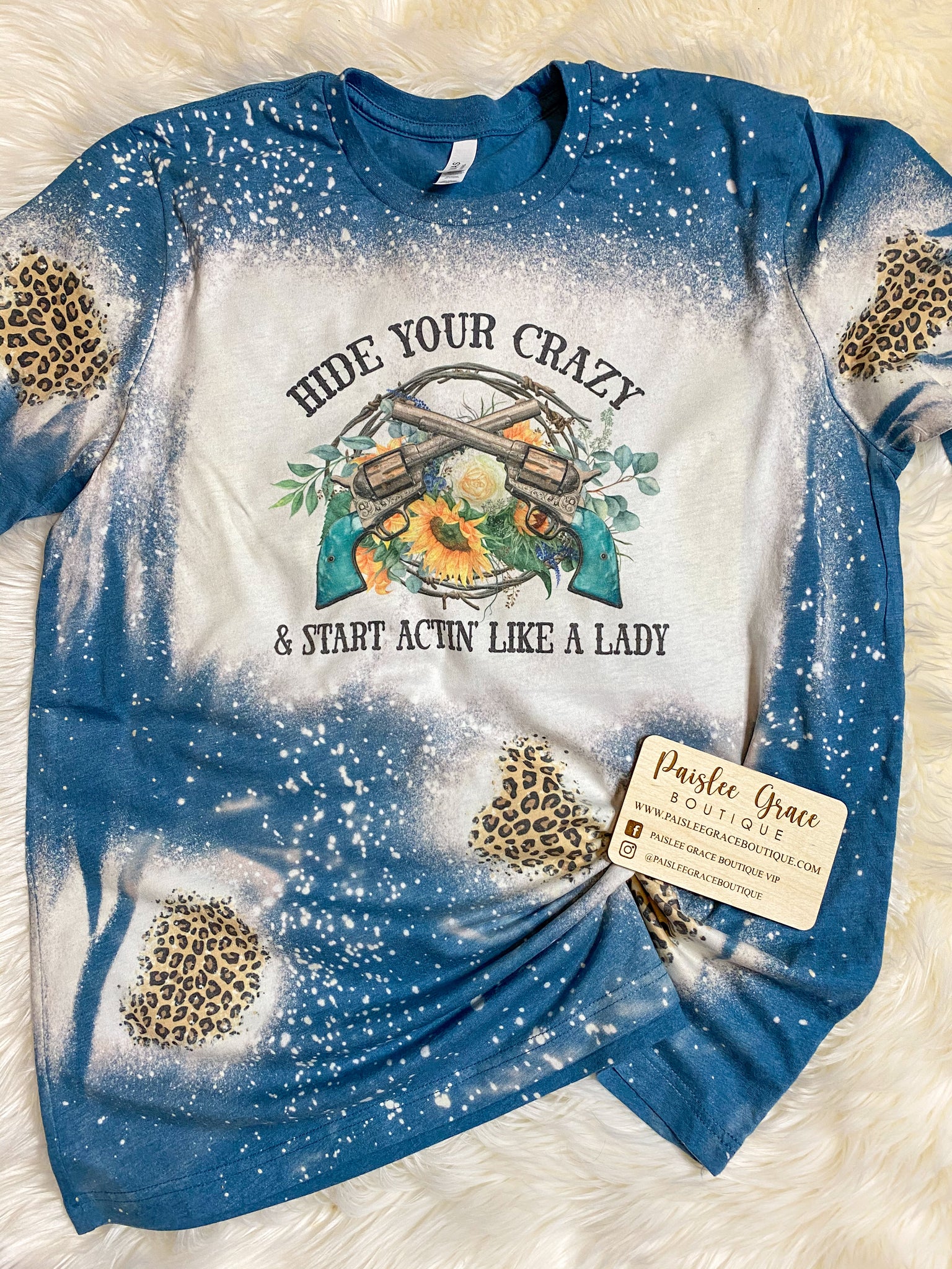 Hide Your Crazy Bleached Tee w/ Leopard Add Ons